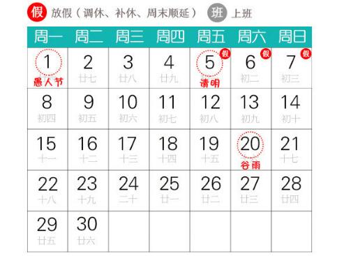 4月4日(周五)至6日(周日)放假,共3天。(与周末连休,不调休)