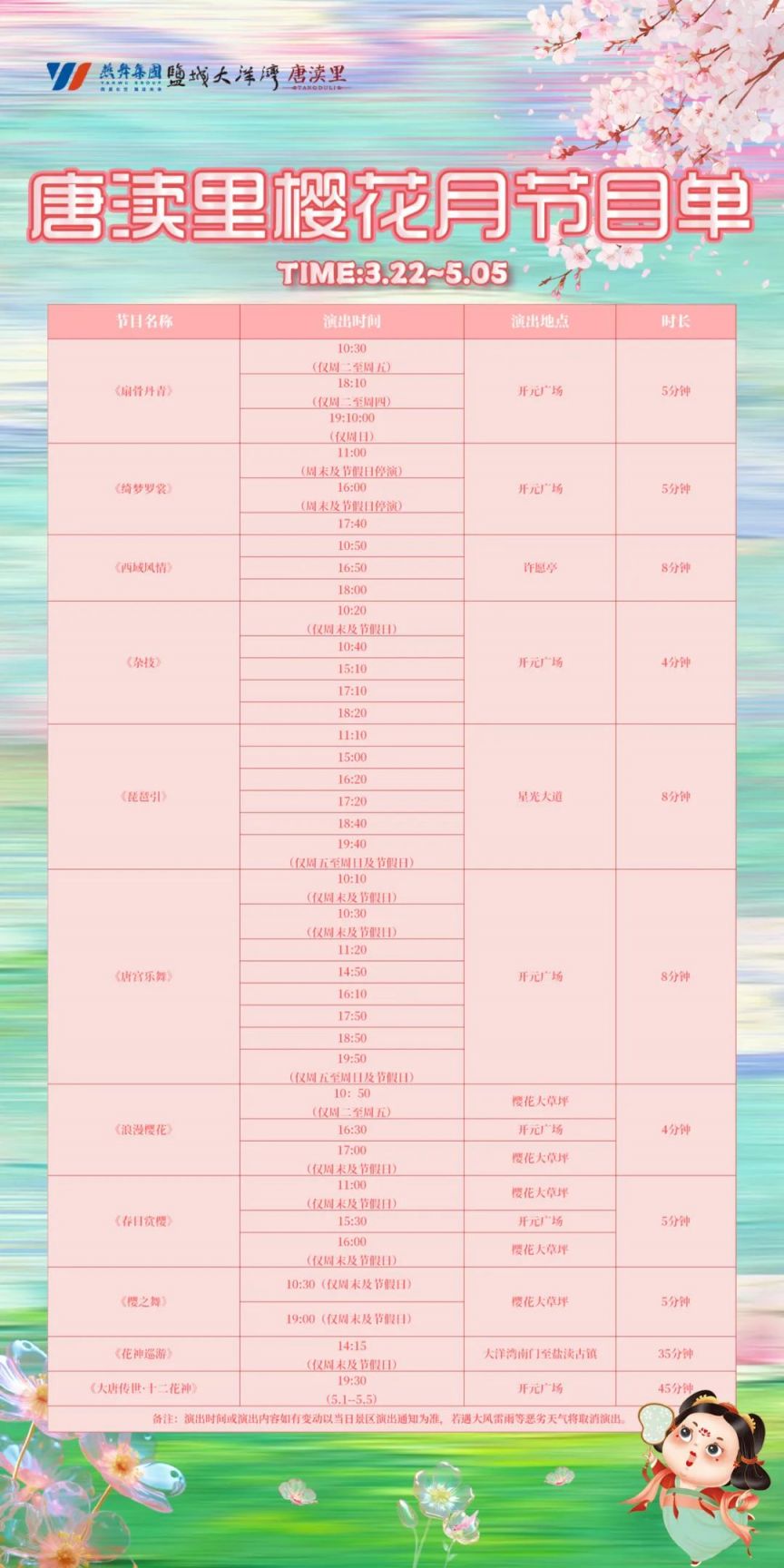 唐渎里樱花月节目单(3.22—5.05)