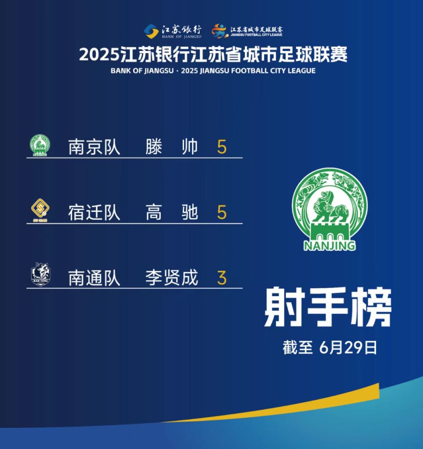 【2025江苏银行江苏城市足球联赛第五轮射手榜】